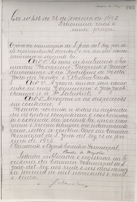 Por fim, localizei no arquivo da Prefeitura a Lei nº 436, de 26/02/1925, aprovada por Basílio de Magalhães, então chefe do Executivo Municipal, decidindo renomear a rua Progresso no bairro do Bonfim, com a nova denominação de João da Matta, em honra aoilustre maestro e compositor, que lecionou e se apresentou profissionalmente em concertos na corte e por todo o Oeste e Sul de Minas, projetando com o seu talento artístico o nome de São João del-Rei.