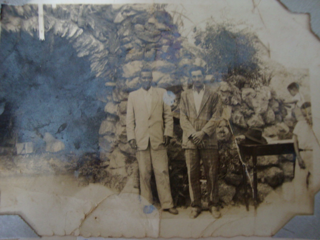 | Sr. Noventa e Sr. Geraldo ao lado da gruta |